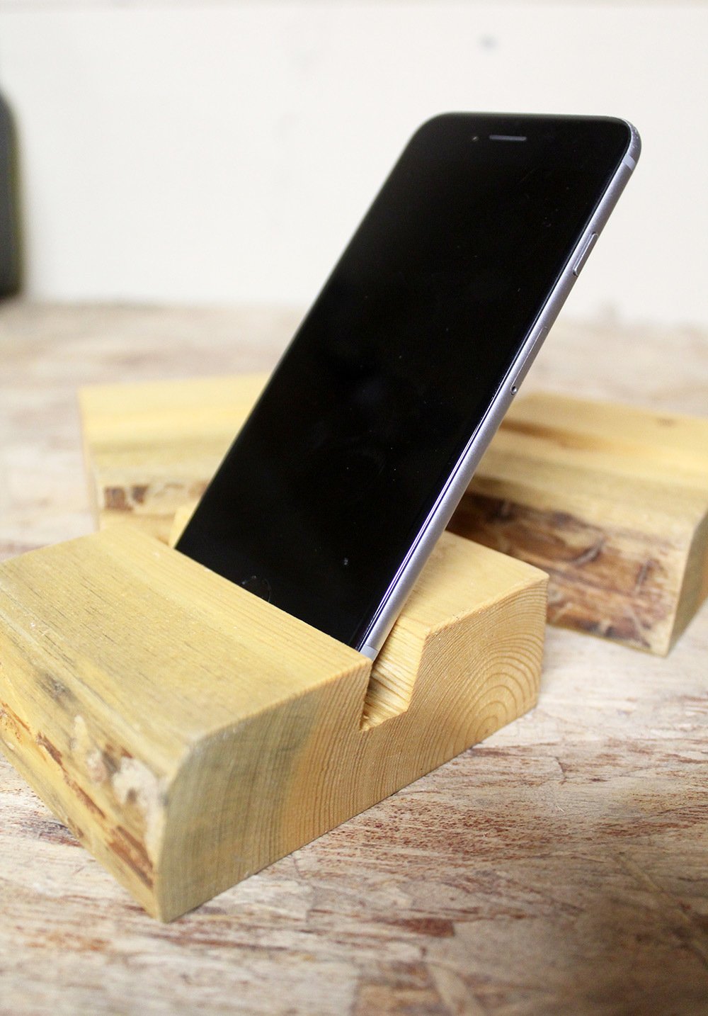 The slot for the phone or tablet is cut at a 15 degree angle that is optimized for viewing purposes. It is cut, sanded, and finished with a coat of polyurethane and natural oils.